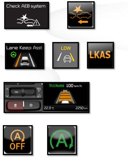 כדי להתריע לנהג על כל בעיה במערכת אם היא עובדת או תקולה, יצרן הרכב התקין נורות בלוח השעונים עם סימונים אוניברסליים ובעלי צבע שונה (אדום, צהוב, ירוק, לבן וכחול).